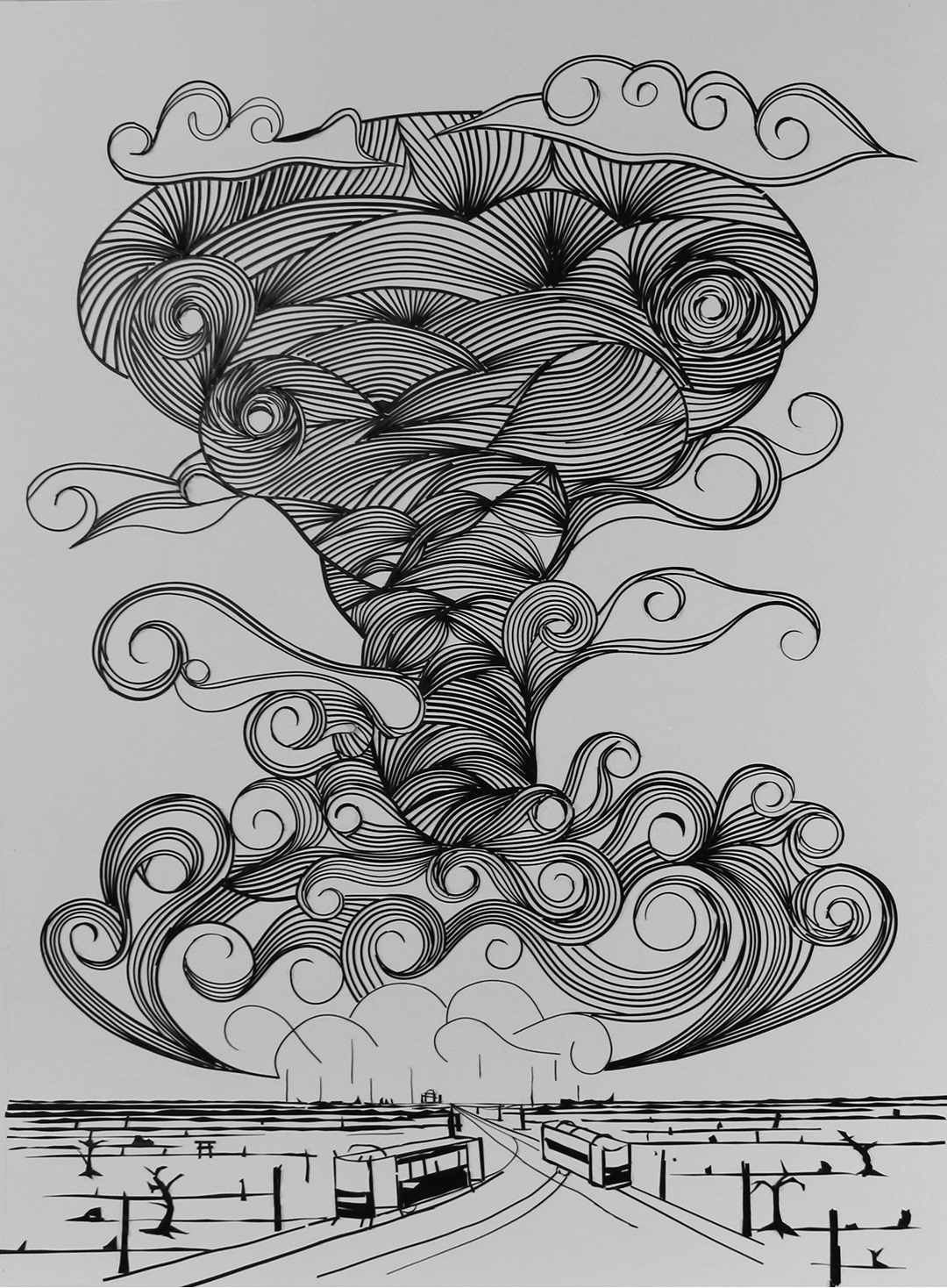 Black rain results from residual radioactive dust and ash following a nuclear blast. It is a dark, oily, highly dangerous form of radioactive contamination. Black rain began falling in Hiroshima 20 to 30 minutes after the explosion. It stained skin, clothing, and buildings. Those who ingested or came into contact with it suffered from hair loss, severe bleeding from gums, and acute leukemia. Water was polluted, and every fish in the river died. People that had not been present for the bombing got radiation poisoning after drinking well water or consuming contaminated food from the area. More than 70 years later, some survivors are still battling illness.