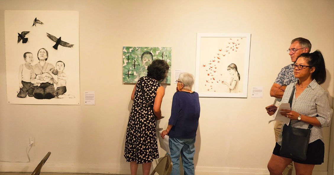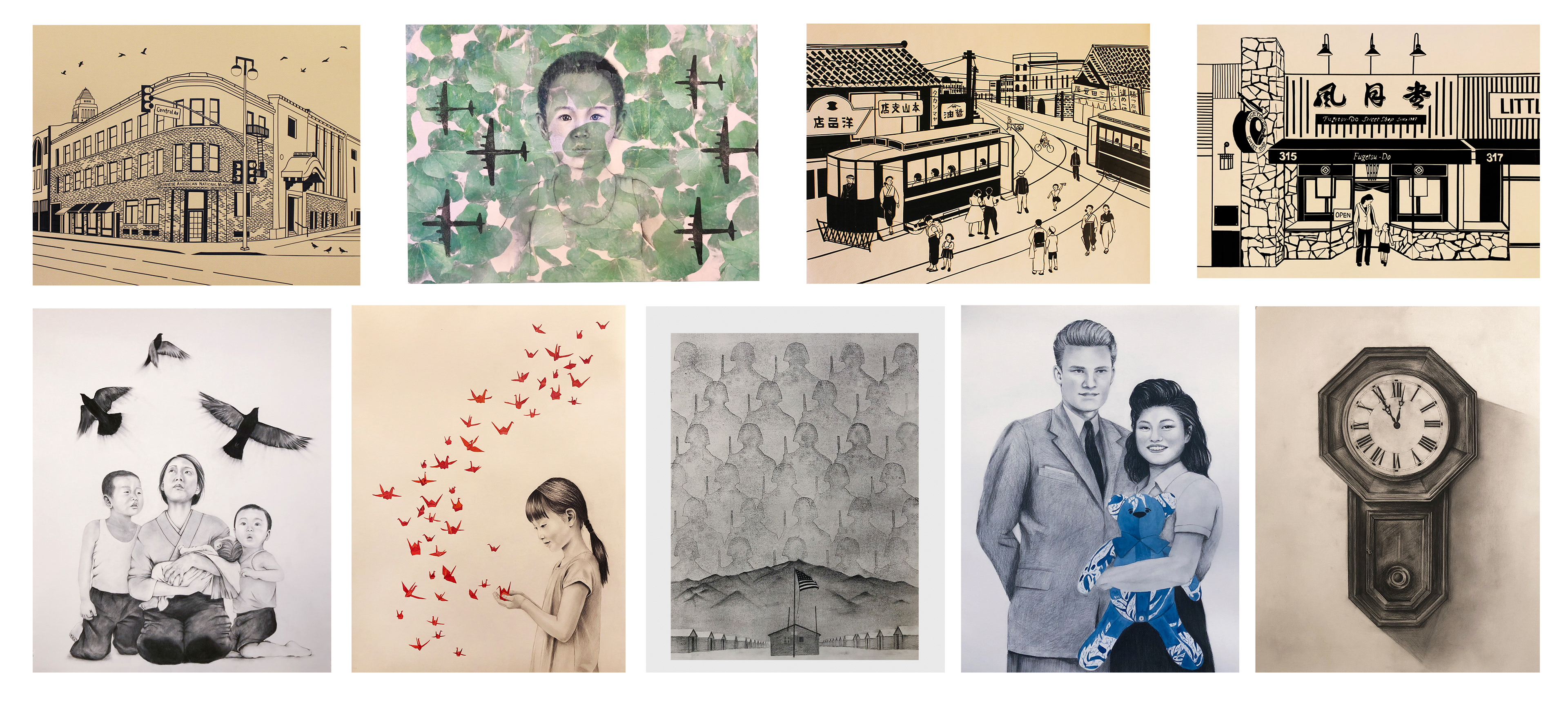 Unfolding Memories: Art of Testimony bridges past and present through art, illuminating the experiences of Japanese and Japanese Americans during WWII. The exhibition features original artworks inspired by interviews conducted by the artist with survivors of wartime. By reflecting on the cost of war in both defeated and victorious nations, this exhibition brings to light lessons of the past that resonate within today’s sociopolitical environment. Created as a space for dialogue and remembrance, Unfolding Memories invites viewers to reflect across generations and cultures, encouraging empathy in today’s divided world.